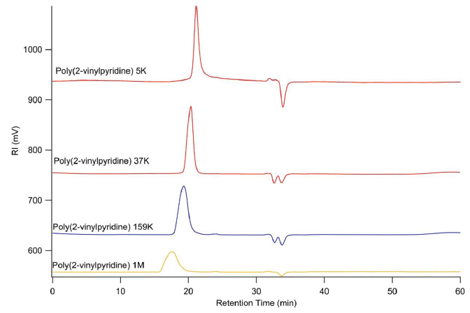 Jordi Resolve阳离子色谱柱适用于带电聚合物的分离,而不需要高盐浓度。这些柱是光散射分析的一个极好的选择,在高盐浓度损害系统性能。Jordi Resolve阳离子色谱柱有一个叔胺基,在弱酸性流动相转化为带正电的季胺。常见的应用包括胺类聚合物的分离,如聚(乙烯亚胺)在水/乙酸溶液中。